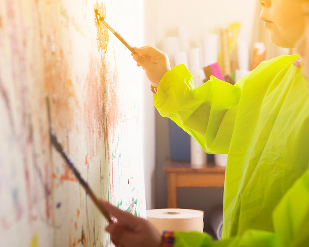 Im Kreativ-Atelier arbeiten wir mit unterschiedlichen Materialien, wie beispielsweise Ton, Erde oder Gips. Bei der handwerklichen Bearbeitung dieser Materialien werden die Kinder von uns unterstützt. Dadurch wird die Kreativität gefördert und die Fantasie angeregt.